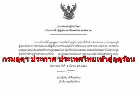 กรมอุตุนิยมวิทยาเตือนภัยตอนภาคเหนืออีสานตะวันออกจะยังอากาศร้อนอย่างต่อเนื่อง