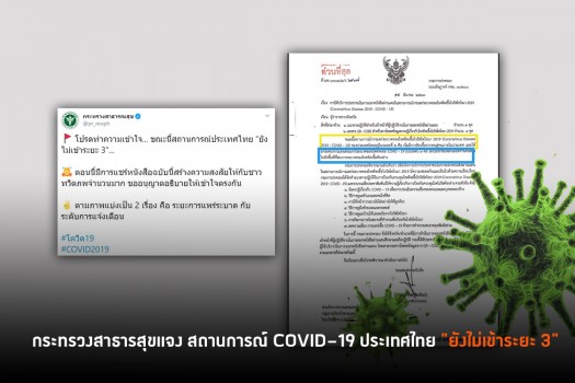 กระทรวงสาธารณะสุข ยัน การแพร่ะระบาดเชื้อ" โควิด-19 " ในไทย ยังไม่เข้าระยะที่3