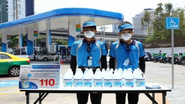 ประชาชนแห่ซื้อแอลกอฮอล์ ที่จำหน่ายที่สถานีปั๊มน้ำมัน ปตท.