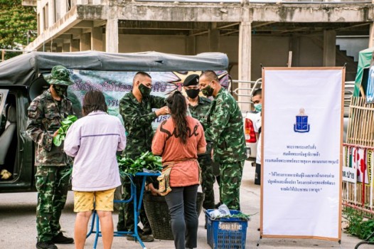กำลังพลในโครงการทหารพันธุ์ดีนำผลผลิตทางการเกษตรออกจัดจำหน่ายบริเวณหน้าค่ายพระปิ่นเกล้า