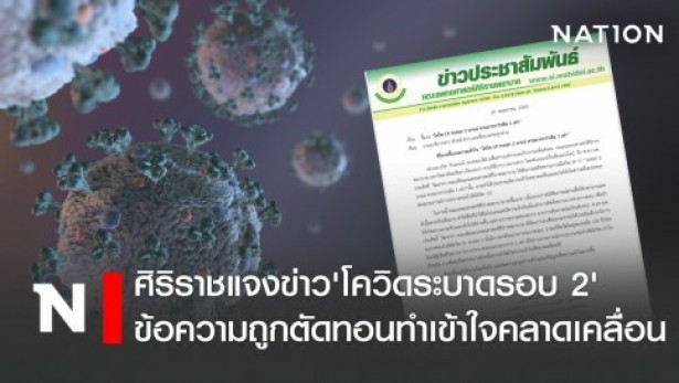 โรงพยาบาลศิริราชออกหนังสือชี้แจงความเข้าใจ โควิด-19 Credit Picture by Nation