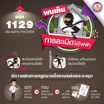 พบเห็นการละเมิดใช้ไฟฟ้า แจ้ง 1129