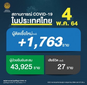 ศบค.รายงานพบผู้ป่วยรายใหม่1,763 ราย