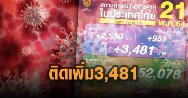 ศบค.เผยวันนี้พบผู้ติดเชื้อโควิด-19 เพิ่ม 3,481 ราย หายป่วยกลับบ้านแล้ว 2,868 ราย