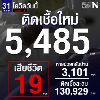 ศบค.เผยยอดผู้ติดเชื้อโควิด-19 วันนี้้เป็นสถิติรวมกว่า 5,485 ราย หายป่วยกลับบ้าน 3,101 ราย Credit Pictureby NationTV22