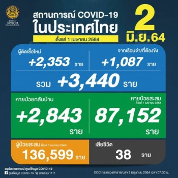 ศบค.เผยจำนวนผู้ติดเชื้อรายใหม่ 3,440 ราย