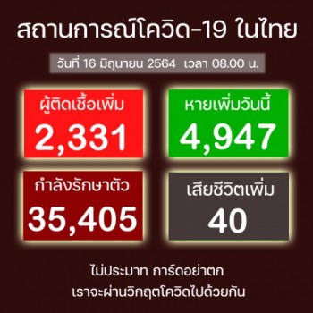 พบผู้ติดเชื้อโควิด-19เพิ่มอีกกว่า 2300 ราย เสียชีวิต 40 ราย