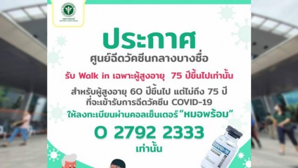 ศูนย์ฉีดวัคซีนบางซื่อเปิดรับลงทะเบียนผู้สูงอายุ 60 ปี ขึ้นไป