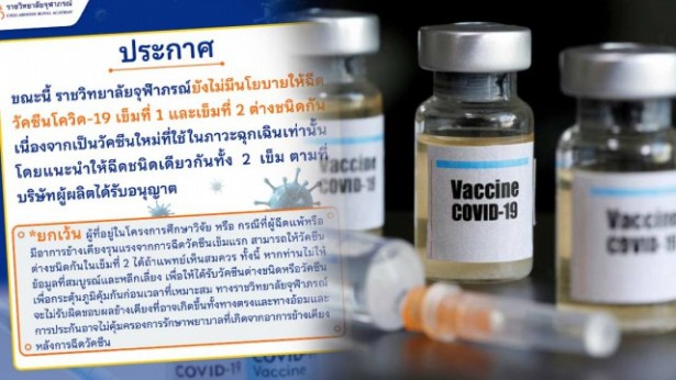 ราชวิทยาลัยจุฬาภรณ์ประกาศยังไม่มีนโยบายให้ฉีดวัคซีน2เข็มต่างชนิด