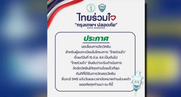 เพจไทยร่วมใจแถลงกรณีเลื่อนฉีดวัคซีน
