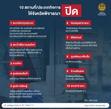 ศบค.พิจารณาปิดสถานที่และกิจการเพิ่มอีก 10 รายการ