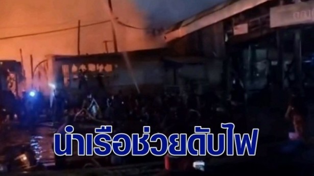 ชาวบ้านคลองดำเนินนำเรือออกมาช่วยสูบน้ำดับเพลิงตลาดริมน้ำ100ปี Credit Pic by CH3+
