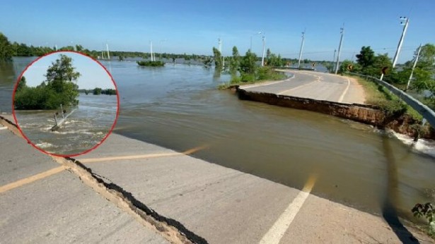 เจ้าหน้าที่แขวงการทางขอนแก่น ปิดกั้นทางเข้าวัดท่าสองคร