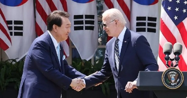 นายเอ็ดการ์ด เคแกน ผู้ช่วยพิเศษของประธานาธิบดีสหรัฐและผู้อำนวยการอาวุโสด้านเอเชียตะวันออกและโอเชียเนียของสภาความมั่นคงแห่งชาติกล่าวกับผู้สื่อข่าวเกาหลีใต้ที่กรุงวอชิงตันว่า เขาขอพูดอย่างตรงไปตรงมาว่าเขาไม่คิดว่าปฏิญญาวอชิงตันที่ประธานาธิบดีโจ ไบเดน ของสหรัฐและประธานาธิบดียุน ซอก-ยอล ของเกาหลีใต้เห็นพ้องกันระหว่างประชุมสุดยอดที่กรุงวอชิงตันเมื่อวันพุธ เป็นข้อตกลงเรื่องการแบ่งปันอาวุธนิวเคลียร์ หลังจากนายคิม แท-ฮโย รองที่ปรึกษาความมั่นคงแห่งชาติของเกาหลีใต้กล่าวว่า ปฏิญญาวอชิงตันจะทำให้ชาวเกาหลีใต้รู้สึกว่ากำลังแบ่งปันอาวุธนิวเคลียร์กับสหรัฐ