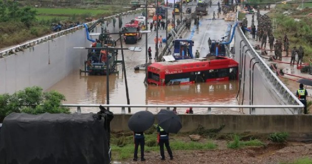 สำนักอุตุนิยมวิทยาเกาหลีพยากรณ์ว่า จะมีฝนตกหนักไปจนถึงวันพุธ ขอให้ประชาชนงดออกนอกบ้าน ขณะนี้เกาหลีใต้กำลังอยู่ในช่วงสูงสุดของฤดูมรสุมประจำฤดูร้อน ซึ่งทำให้เกิดน้ำท่วมอยู่เสมอ ที่ผ่านมามีการเตรียมการอย่างดี ทำให้มีผู้เสียชีวิตไม่มากนัก ปี 2565 เกาหลีใต้เผชิญฝนตกหนักที่สุดนับตั้งแต่เริ่มการจดบันทึกเมื่อ 115 ปีก่อน และเกิดน้ำท่วมครั้งใหญ่ มีผู้เสียชีวิตรวม 11 คน แต่ยอดผู้เสียชีวิตจำนวนมากในปีนี้ทำให้ประธานาธิบดียุน ซอก-ยอลตำหนิว่า เกิดจากการบริหารผิดพลาดในพื้นที่เสี่ยงอันตราย และจะต้องปรับปรุงวิธีการรับมือกับสภาพอากาศรุนแรงด้วยการยกเครื่องใหม่หมด
