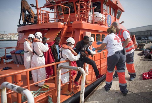 หน่วยกู้ภัยทางทะเลสเปน แถลงว่า ได้ให้การช่วยเหลือผู้อพยพเป็นชาย 53 คน และหญิง 2 คน จากเรือลำหนึ่ง ขณะพยายามเดินทางข้ามทะเลเมดิเตอร์เรเนียน ทั้งหมดมาจากประเทศแถบตอนใต้ทะเลทรายซาฮารา และยังคงมีสุขภาพแข็งแรงดี รายงานระบุว่า เครื่องบินและเรือกู้ภัยเข้าช่วยเหลือผู้อพยพจากเรือดังกล่าว ที่อยู่ห่างไปราว 20 กิโลเมตร จากทางตะวันตกเฉียงใต้ของเกาะอัลโบแรน ซึ่งตั้งอยู่ตรงกลางระหว่างชายฝั่งทางเหนือของแอฟริกากับทางใต้ของสเปน ( ภาพ AFP)
