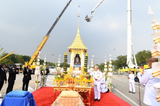 วันนี้ (6 ม.ค. 61) สมเด็จพระเจ้าอยู่หัวทรงพระกรุณาโปรดเกล้า โปรดกระหม่อมให้ พลเอก สุรยุทธ์ จุลานนท์ องคมนตรี เป็นผู้แทนพระองค์ประกอบพิธีรื้อถอนพระเมรุมาศ จำลอง ในงานพระราชพิธีถวายพระเพลิงพระบรมศพพระบาทสมเด็จพระปรมินทรมหา ภูมิพลอดุลยเดช บรมนาถบพิตร ณ พระลานพระราชวังดุสิต เขตดุสิต กรุงเทพมหานคร เมื่อ พลเอก สุรยทธ์ เดินทางโดยรถยนต์พระประเทียบถึงยังหน้าพระบรมราชานุสรณีย์ พระบาทสมเด็จพระจุลจอมเกล้าเจ้าอยู่หัว วางพวงมาลัย จุดธูปเทียนเครื่องทองน้อย ถวายราชสักการะ จากนั้นเดินทางโดยรถยต์พระประเทียบไปยังพลับพลาพิธี ถวาย ความเคารพพระราชอาสน์ และนั่งเก้าอี้ที่จัดไว้ กระทั่งเวลา 15.39 น. อันเป็นเวลาฤกษ์ ที่อยู่ระหว่างเวลา 15.39-18.00 น. พลเอก สุรยุทธ์ ออกจากพลับพลาพิธีไปยังโต๊ะเครื่องบวงสรวง จุดเทียนทอง เทียนเงิน และจุดธูปที่โต๊ะ เครื่องบวงสรวง ขณะนั้นโหรหลวงลั่นฆ้องชัย ชาวพนักงานประโคมสังข์แตร พระภูษามาลา แกว่งบัณเฑาะว์ พลเอก สุรยุทธ์ จุดธูปหางปักที่เครื่องบวงสรวง จุดธูปเทียนเครื่องทองน้อย ถวายราชสักการะ ต่อมาเข้าสู่พลับพลาพิธี นายฉัตรชัย ปิ่นเงิน หัวหน้าพราหมณ์ อ่านโองการบวงสรวง เมื่ออ่านโองการจบแล้ว พลเอก สุรยุทธ์ เดินทางไปยังพระเมรุมาศจำลอง สุหร่าย และรับค้อนจากเจ้าพนักงาน พระราชพิธี ทุบที่ชาลาหน้าพระเมรุมาศ 3 ครั้ง แล้วโปรยดอกไม้ ต่อมาผู้แทนพระองค์ไปยังบริเวณหน้าโต๊ะเครื่องบวงสรวง จับสายพระสูตร อัญเชิญนพปฎล เศวตฉัตรลงจากพระเมรุมาศจำลอง และกราบที่หน้าโต๊ะเครื่องบวงสรวง และถวาย ความเคารพพระราชอาสน์ เป็นอันเสร็จพิธี ในการรื้อถอนพระเมรุมาศจำลอง