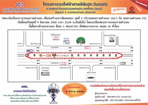 การรถไฟฟ้าขนส่งมวลชนแห่งประเทศไทย หรือ รฟม. แจ้งว่าบริษัท ยูนิค เอ็นจิเนียริ่ง แอนด์ คอนสตรัคชั่น จำกัด (มหาชน) ผู้รับจ้างก่อสร้างงานโยธา โครงการรถไฟฟ้าสายสีส้ม (ตะวันออก) ช่วงศูนย์วัฒนธรรมแห่งประเทศไทย – มีนบุรี สัญญา 4 จะดำเนินการก่อสร้าง บริเวณเกาะกลางถนน จุดที่ 4 บริเวณซอยรามคำแหง 151/1 ถึงซอยรามคำแหง 159 โดยเบี่ยงจราจรถนนรามคำแหงและปิดจุดกลับรถในบริเวณดังกล่าวเพื่อการก่อสร้าง ทั้งฝั่งขาเข้าและขาออก ฝั่งละ 1 ช่องจราจร (ชิดเกาะกลาง) และมีความจำเป็นต้องปิด จุดกลับรถบริเวณหน้าซอยรามคำแหง 157/2 ตลอด 24 ชั่วโมง เริ่มวันพุธที่ 10 มกราคมนี้ ตั้งแต่เวลา 22.00 น. เป็นต้นไป โดยมีแผนการจัดการจราจรในระหว่างดำเนินการก่อสร้าง เช่น ห้ามจอดรถบริเวณไหล่ทาง ตลอดแนวก่อสร้างเพื่อใช้เป็นช่องจราจรทดแทน ปรับผิวจราจรและตีเส้นช่องจราจรให้ชัดเจน ติดตั้งป้ายเตือนและไฟส่องสว่างเพื่อความปลอดภัยของผู้ใช้เส้นทาง ปรับภูมิทัศน์ด้วยการ ติดตั้งแผงผ้าใบบนแบริเออร์คอนกรีตด้วยภาพต้นไม้เขียวขจี และประชาสัมพันธ์ให้ผู้ใช้ เส้นทางทราบล่วงหน้าเพื่อวางแผนในการเดินทาง
