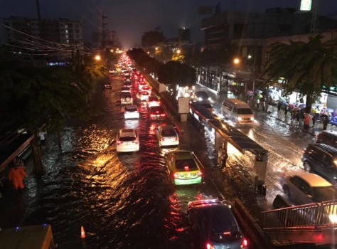 เมื่อเวลา 05.00 น. วันนี้ ศูนย์ป้องกันน้ำท่วม กรุงเทพมหานคร รายงานว่า เกิดฝนปานกลาง ถึงหนักกลุ่มใหญ่ เคลื่อนเข้ามาในพื้นที่กรุงเทพฯ ด้านตะวันออก เวลา 05.30 น.พบฝน ปานกลางถึงหนักปกคลุมพื้นที่ฝั่งพระนครเกือบทั้งหมด ต่อเนื่องพื้นที่แนวริมแม่น้ำทั้งสองฝั่ง เวลา 05.45 น. สภาพอากาศพื้นที่กรุงเทพฯ ฝนปานกลางปกคลุมพื้นที่ฝั่งพระนคร เกือบทั้งหมด ต่อเนื่องพื้นที่แนวริมแม่น้ำทั้งสองฝั่ง เคลื่อนเข้าพื้นที่ฝั่งธนบุรี ปริมาณฝน สูงสุด เขตหนองจอก 84.0 มม. เวลา 06.45 น.จากที่มีปริมาณฝนตกลงมาในพื้นที่กรุงเทพฯครอบคลุมเกือบทั้งหมดของ พื้นที่ฝั่งพระนคร ตั้งแต่เวลาประมาณ 05.00 น. ถึงขณะนี้ ศูนย์ป้องกันน้ำท่วม สำนัก การระบายน้ำ กทม. แจ้งว่า มีน้ำท่วมขังในถนนหลายสาย ได้แก่ ถ.พัฒนาการ บริเวณ หน้าโชว์รูมเบนซ์ สูง 15 ซม./ ถ.ลาดพร้าว ซ.112-คลองเจ้าคุณสิงห์ สูง 15 -20 ซม. / ถ.สุขุมวิท จากซ.แบริ่ง -ซ.ลาซาล สูง 15-20 ซม. / ถ.ศรีนครินทร์ บริเวณหน้าบริษัท ทีสปอร์ต สูง 15-20 ทั้งนี้ บริเวณถนนสุขุมวิทมีระดับน้ำสูง เสมอทางเท้าหลายจุด ขอให้เผื่อเวลาเดินทาง และขับขี่ด้วยความระมัดระวัง โดยเจ้าหน้าที่กำลังเร่งระบายน้ำอย่างต่อเนื่อง ขณะนี้ วัดปริมาณฝนสูงสุดได้ที่เขตมีนบุรี 89 มิลลิเมตร