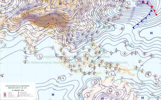 ประกาศกรมอุตุนิยมวิทยา "อากาศหนาวเย็นลงบริเวณประเทศไทยตอนบน และ คลื่นลมแรงบริเวณภาคใต้ (มีผลกระทบตั้งแต่วันที่ 10-15 มกราคม 2561)" ฉบับที่ 9 ระบุว่า วันที่ 10 มกราคม บริเวณภาคเหนือ และด้านตะวันตกของภาคกลาง จะยังคง มีฝนฟ้าคะนองเกิดขึ้นได้ ส่วนบริเวณภาคตะวันออกเฉียงเหนือ ภาคตะวันออก กรุงเทพมหานครและปริมณฑล มีฝนลดลง หลังจากนั้น ช่วงวันที่ 11-15 มกราคม บริเวณประเทศไทยตอนบน จะมีอากาศหนาวเย็นลงโดยทั่วไปกับมีลมแรง อุณหภูมิจะลดลงได้ 4-6 องศาเซลเซียส สำหรับบริเวณภูเขาสูงในภาคเหนือ และ ภาคตะวันออกเฉียงเหนือ จะมีอากาศหนาวถึงหนาวจัด จึงขอให้ประชาชนดูแล รักษาสุขภาพ เนื่องจากอากาศที่เปลี่ยนแปลง และเกษตรกรควรระวังความเสียหาย ที่จะเกิดขึ้นต่อผลผลิตทางการเกษตรไว้ด้วย ทั้งนี้ เนื่องจากบริเวณความกดอากาศสูงกำลังแรงจากประเทศจีน แผ่ลงมาปกคลุม ภาคตะวันออกเฉียงเหนือแล้ว และจะแผ่ปกคลุมประเทศไทยจนถึงวันที่ 15 มกราคม มรสุมตะวันออกเฉียงเหนือที่พัดปกคลุมอ่าวไทยและภาคใต้ มีกำลังแรงขึ้น ทำให้ ภาคใต้มีฝนตกหนักบางแห่ง ส่วนคลื่นลมบริเวณอ่าวไทย และทะเลอันดามัน มีกำลังแรง โดยมีคลื่นสูง 2-3 เมตร ขอให้ประชาชนบริเวณชายฝั่งภาคใต้ฝั่งตะวันออก ระวังอันตราย จากคลื่นลมแรงที่พัดเข้าหาฝั่ง ส่วนชาวเรือควรเดินเรือด้วยความระมัดระวังและเรือเล็ก บริเวณอ่าวไทย ควรงดออกจากฝั่งในช่วงวันที่ 10-15 มกราคม จึงขอให้ประชาชนติดตามประกาศจากกรมอุตุนิยมวิทยา และสามารถติดตามข้อมูล ที่เว็บไซต์กรมอุตุนิยมวิทยา http://www.tmd.go.th หรือสายด่วนพยากรณ์อากาศ 1182 ได้ตลอด 24 ชั่วโมง