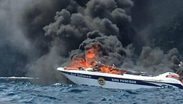 ความคืบหน้า เรือสปีดโบ๊ทจากภูเก็ต ชื่อ “เรือคิงไพไซดอน” 3 เครื่องยนต์ บรรทุกนักท่องเที่ยวและลูกเรือ รวม 31 คน มาจากจังหวัดภูเก็ต เพื่อท่องเที่ยวเกาะพีพี เกิดระเบิดและควันไฟพวยพุ่ง บริเวณกลางทะเลเกาะพีพีเล ใกล้ถ้ำไวกิ้ง ตำบลอ่าวนาง อ.เมืองกระบี่ นายวรพจน์ ล้อมลิ้ม หัวหน้าอุทยานแห่งชาติหาดนพรัตน์ธารา หมู่เกาะพีพี สั่งการให้เจ้าหน้าที่อุทยานฯ ประจำเกาะพีพี เข้าช่วยเหลือ พร้อมด้วยหน่วยกู้ภัยทางทะเล สปีดโบ๊ท และเรือบริการนำเที่ยวของเอกชน ที่อยู่บริเวณใกล้เคียง ช่วยกันขนถ่ายนักท่องเที่ยวออกจากเรือ ส่ง รพ.เกาะพีพี โดยมีนักท่องเที่ยวสำลักควันไฟอาการหนัก 5 คน ได้รับการส่งต่อไปยัง รพ.กระบี่ นอกจากนี้ ยังมีผู้บาดเจ็บและสำลักควัน อาการเล็กน้อย-ปานกลาง ส่ง รพ.วชิระ ภูเก็ต และอีก 23 คน ได้รับการส่งกลับไปยัง จ.ภูเก็ต จากการสอบถามของเจ้าหน้าที่ ทราบว่าสาเหตุเกิดจากน้ำมันรั่ว บริเวณหน้าถ้ำไวกิ้ง กัปตันให้เด็กเรือจับพวงมาลัยแทน แล้วกัปตันไปดูเครื่องด้านหลัง พอกัปตันเปิดฝาดูก็เกิดระเบิดขึ้น มีคนเจ็บหนักมากถึง 5-6 คน หนึ่งในนั้น คือ กัปตัน น่าจะอาการหนักสุด กับหญิงชาวจีน ทั้งนี้ บนเรือ มี นทท.จีน 26 คน ที่เหลืออีก 5 คน เป็นไกด์นำเที่ยว 2 คน ลูกเรือ 2 คน และกัปตันเรือ เจ้าหน้าที่จะสอบสวนสาเหตุการเกิดเพลิงลุกไหม้ที่แท้จริงต่อไป