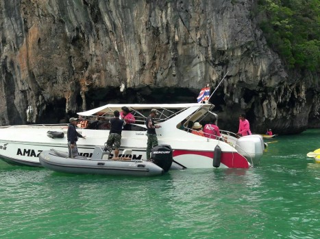 นายศรายุทธ ตันเถียร หัวหน้าอุทยานแห่งชาติอ่าวพังงา สั่งการให้เจ้าหน้าที่อุทยานแห่งชาติ อ่าวพังงา ตรวจเรือทุกลำ ดูใบอนุญาตเข้าเขตอุทยานแห่งชาติอ่าวพังงา ซึ่งพบว่ายังมีเรือ สปีดโบ๊ตที่ยังไม่ต่อทะเบียนใบอนุญาตเข้าเขตอุทยานแห่งชาติอ่าวพังงา ตามนโยบายของ นายธัญญา เนติธรรมกุล อธิบดีกรมอุทยานแห่งชาติ สัตว์ป่า และพันธุ์พืช และกระทรวง ทรัพยากรธรรมชาติและสิ่งแวดล้อม จึงสั่งการให้ปรับตามกฎหมายกำหนด จากสถิติการเปรียบเทียบปรับของเจ้าหน้าที่อุทยานแห่งชาติอ่าวพังงา พบว่าตั้งแต่เดือน กรกฎาคม 2560 จนถึงเดือนมกราคม 2561 มีการเปรียบเทียบปรับเรือนำเที่ยวไม่มีใบอนุญาต เข้าเขตอุทยานแห่งชาติอ่าวพังงาแล้ว จำนวน 121 ลำ เป็นเงิน 95,500 บาท เป็นการกระทำผิด ตาม พ.ร.บ.อุทยานแห่งชาติ พ.ศ. 2504 มาตรา 16(13) ฐานเข้าไปดำเนินกิจการใดๆ หรือ หาผลประโยชน์โดยไม่ได้รับอนุญาต และมาตรา 18 ฐานไม่ปฏิบัติตามคำสั่งของพนักงาน เจ้าหน้าที่ พร้อมทั้งตักเตือน และแจ้งให้ยื่นขออนุญาตนำเที่ยวให้ถูกต้อง เมื่อเปรียบเทียบสถิติการยื่นขอใบอนุญาตเข้าเขตอุทยานแห่งชาติอ่าวพังงา ช่วงก่อนหน้านี้ ตั้งแต่ 4 ตุลาคม 2559 ถึง 4 กรกฎาคม 2560 พบว่า เรือหางยาวขออนุญาต จำนวน 141 ลำ, สปีดโบ๊ต 73 ลำ, เรือใหญ่ 56 ลำ, ซีแคนู 472 ลำ ส่วนเรือที่ขอใบอนุญาตเข้าเขตอุทยานแห่งชาติอ่าวพังงา ตั้งแต่วันที่ 5 กรกฎาคม 2560 ถึงปัจจุบัน พบว่า เรือหางยาวขออนุญาต จำนวน 335 ลำ, สปีดโบ๊ต 185 ลำ, เรือใหญ่ 99 ลำ, ซีแคนู 959 ลำ โดยการขออนุญาตเข้าเขตอุทยานแห่งชาติอ่าวพังงา มีเพิ่มขึ้น เรือหางยาว ขออนุญาต เพิ่มขึ้นจำนวน 194 ลำ, สปีดโบ๊ต 112 ลำ, เรือใหญ่ 43 ลำ, ซีแคนู 487 ลำ ทั้งนี้ การตรวจสอบเรือที่ขอใบอนุญาตเข้าเขตอุทยานแห่งชาติ เป็นมาตรการที่ควบคุม เรือนำเที่ยว เพื่อต้องการทราบจำนวนเรือนำเที่ยวที่เข้าเขตอุทยานแห่งชาติ อีกทั้งเป็น มาตรการดูแลควบคุมความปลอดภัยให้แก่นักท่องเที่ยวอีกทางหนึ่งด้วย