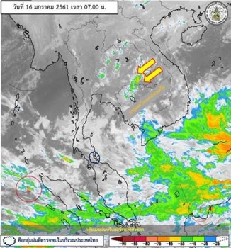 กรมอุตุนิยมวิทยา พยากรณ์อากาศ 24 ชั่วโมงข้างหน้า ประเทศไทยตอนบนจะมีอุณหภูมิสูงขึ้น 1-3 องศาเซลเซียส แต่ยังคงมีอากาศเย็นกับมีหมอกในตอนเช้าและมีหมอกหนาบางพื้นที่ ขอให้ประชาชนเพิ่มความระมัดระวังในการสัญจรผ่านบริเวณที่มีหมอกไว้ด้วย สำหรับภาคใต้ มีฝนลดน้อยลง ส่วนคลื่นลมบริเวณอ่าวไทยและทะเลอันดามันมีกำลังอ่อนลง โดยมีคลื่นสูง 1-2 เมตร สำหรับกรุงเทพฯ และปริมณฑล อากาศเย็นกับมีหมอกในตอนเช้า อุณหภูมิจะสูงขึ้น 2-3 องศาเซลเซียส