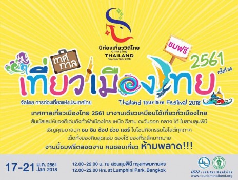 นายยุทธศักดิ์ สุภสร ผู้ว่าการการท่องเที่ยวแห่งประเทศไทย หรือ ททท. เปิดเผยว่า งาน “เทศกาลเที่ยวเมืองไทย” ครั้งที่ 38 ประจำปี 2561 ณ สวนลุมพินี กรุงเทพมหานคร ภายใต้”แนวคิด “เสน่ห์วิถีไทย ความภาคภูมิใจสู่ความยั่งยืน” เปิดอย่างเป็นทางการแล้ว เย็นวานนี้ อย่างคึกคัก ซึ่งงานจะจัดถึงวันที่ 21 มกราคมนี้ เวลา 12.00-22.00น. โดยได้รวบรวมของดีของเด่นจากทุกภูมิภาคของเมืองไทย และกิจกรรมท้องถิ่นที่น่าสนใจ พร้อมชูไฮไลท์หมู่บ้าน 5 ภูมิภาค และกิจกรรมอื่นๆ อีกมากมายมาให้ผู้เข้าชมงานได้ร่วมกิจกรรม งาน“เทศกาลเที่ยวเมืองไทย” ถือเป็นมหกรรมท่องเที่ยวครั้งยิ่งใหญ่ประจำปี 2561 ภายในงานจะพบกับ 10 โซนกิจกรรมท่องเที่ยวปลุกกระแส ท่องเที่ยววิถีไทย เก๋ไก๋อย่างมีคุณค่า พร้อมสร้างแรงบันดาลใจให้เกิดการเดินทางท่องเที่ยวอย่างจริงจังไปยังแหล่งท่องเที่ยวต่าง ๆ ในประเทศไทย คาดว่าจะมีผู้เข้าร่วมชมงานกว่า 600,000 คน ตลอด 5 วันของการจัดงาน และคาดว่าจะมีเงินหมุนเวียนภายในงานกว่า 420 ล้านบาท สำหรับผู้ที่สนใจจะเข้าร่วมชมงาน สามารถใช้บริการขนส่งสาธารณะ ทั้งรถโดยสารประจำทาง รถไฟฟ้าใต้ดิน MRT สถานีสีลม และรถไฟฟ้า BTS สถานีศาลาแดง หรือสอบถามรายละเอียดเพิ่มเติมได้ที่ 1672