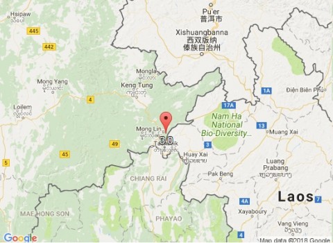 สำนักเฝ้าระวังแผ่นดินไหว กรมอุตุนิยมวิทยา รายงานว่า เมื่อเวลา 02.44 น. ที่ประเทศ เมียนมา เกิดแผ่นดินไหว ขนาด 2.9 ตามมาตราริกเตอร์ ความลึก 3 กิโลเมตร ทางทิศตะวันออกเฉียงเหนือของ อ.แม่สาย จ.เชียงราย ประมาณ 25 กิโลเมตร เบื้องต้นไม่ได้ รับรู้สึกแรงสั่นไหว