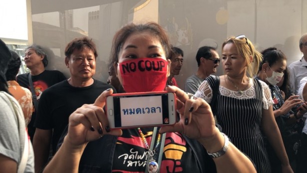 วันนี้ เวลา 17.30 น. นายรังสิมันต์ โรม แกนนำกลุ่มฟื้นฟูประชาธิปไตย พร้อมด้วย นายสิรวิชญ์ เสรีธิวัฒน์ หรือ จ่านิว กล่าวปราศัยโจมตีรัฐบาล คสช. ที่เลื่อนการเลือกตั้งออกไป ว่า พล.อ.ประยุทธ์ จันทรโอชา นายกรัฐมนตรี และหัวหน้า คสช. ได้ประกาศว่าจะคืนความสุข ให้กับประชาชน แต่ในวันนี้ กลับผิดคำสัญญา ซึ่งทุกคนมีแต่ความทุกข์ พล.อ.ประยุทธ์ ทำสำเร็จแค่สิ่งเดียว คือการยึดอำนาจ โดยมีพล.อ.ประวิตร วงษ์สุวรรณ รองนายกรัฐมนตรี และรัฐมนตรีว่าการกระทรวงกลาโหม เป็นผู้อยู่เบื้องหลัง เชื่อว่าในวันนี้อีก 5-10 ปีข้างหน้า ประเทศไทยก็จะไม่มีอนาคต ถ้ารัฐบาล คสช.ยังอยู่ ถ้านายกฯ รักประเทศจริงๆ ต้อง คืนอำนาจให้ประชาชน จัดการเลือกตั้งให้เร็วที่สุด วันพรุ่งนี้จะไม่มาถึง ถ้าประชาชน ไม่ลุกขึ้นมาเปลี่ยนแปลง ซึ่งวันนี้ที่เรามาชุมนุมกัน เรามาโดยสันติ ไม่มีความรุนแรง เพราะเรามาเพื่ออนาคตของประเทศ ทั้งนี้ ทางกลุ่มยังออกแถลงการณ์ประณาม คสช.ในการตั้งข้อหาดำเนินการทางกฎหมาย 8 แกนนำ ที่ได้รณรงค์เดินเพื่อมิตรภาพ จากกรุงเทพฯ ถึงขอนแก่น โดยอ้างว่าผิดคำสั่ง คสช. ที่3/2558 ที่ห้ามชุมนุมเกิน 5 คนขึ้นไป การกระทำเช่นนี้ของรัฐบาล คสช. แสดง ให้เห็นว่าเป็นการใช้อำนาจตามอำเภอใจจนเลยเถิด ทำให้คสช.มีอำนาจเหนือพลเมือง ตามรัฐธรรมนูญ ดังนั้น ในฐานะประชาชนขอประณามการกระทำที่ละเมิดสิทธิมนุษยชน และสิทธิเสรีภาพตามรัฐธรรมนูญ ท้ายที่สุดขอเรียกร้องให้คสช. หยุดการตั้งข้อหาและ ดำเนินคดีประชาชนและนักเคลื่อนไหวที่แสดงออกทางการเมืองทุกกรณี นอกจากนี้ ยังขอประกาศนัดมาชุมนุมบนสกายวอล์คทุกวันเสาร์ จนถึงวันที่ 22 พ.ค. ซึ่งเป็นวันครบรอบในการรัฐประหาร 4 ปึ และจะชุมนุมต่อไปจนกว่าจะมีการเลือกตั้ง ผู้สื่อข่าวรายงานว่า เจ้าหน้าที่รถไฟฟ้าบีทีเอสได้เข้าไปเจรจาขอให้ยุติการชุมนุม ในเวลา 19.00 น.เนื่องจากบริเวณสกายวอล์คเป็นพื้นที่สาธารณะ แต่ทางกลุ่ม “จ่านิว” ขอชุมนุมจนถึงเวลา 20.00 น. โดยมีตำรวจเจ้าร่วมเจรจาขอให้ยุติการชุมนุมและสลายตัว ในเวลา 20.00 น.