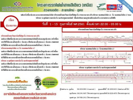 การรถไฟฟ้าขนส่งมวลชนแห่งประเทศไทย(รฟม.) เปิดเผยว่า กิจการร่วมค้าสเตค-เอเอส-4 ผู้รับจ้างก่อสร้างงานระบบรางรถไฟฟ้า โครงการรถไฟฟ้าสายสีเขียว(เหนือ) ช่วงหมอชิต-สะพานใหม่-คูคต สัญญาที่ 4 จะดำเนินการยกอุปกรณ์ และก่อสร้างงานระบบรางรถไฟฟ้า จึงมีความจำเป็นต้องเบี่ยงการจราจรบนถนนพหลโยธิน บริเวณหน้ามหาวิทยาลัยศรีปทุมถึงสวนอาหารบางบัว, บริเวณซอยพหลโยธิน 61 ถึง ซอยพหลโยธิน 67 และบริเวณโรงเรียนฤทธิยะวรรณาลัยถึงหอประชุมกานตรัตน์ (กาน-ตะ-รัด) ในวันที่ 1 -15 กุมภาพันธ์ 2561 ตั้งแต่เวลา 22.00 - 05.00 น. โดยมีรายละเอียดการเบี่ยงช่องจราจรดังต่อไปนี้ 1.บริเวณหน้ามหาวิทยาลัยศรีปทุม ถึงสวนอาหารบางบัว จะทำการเบี่ยงช่องทางจราจรบนถนนพหลโยธินฝั่งขาออกทุกช่องทาง แล้วเบี่ยงขวาไปใช้ช่องทางฝั่งขาเข้า เป็นช่องทางฝั่งขาออก 1 ช่องทาง (ทดแทน) ทำให้มีช่องทางจราจรทั้งฝั่งขาเข้าและฝั่งขาออก คงเหลือฝั่งละ 1 ช่องทาง 2.บริเวณซอยพหลโยธิน 61 ถึง ซอยพหลโยธิน 67 จะทำการเบี่ยงช่องทางจราจรบนถนนพหลโยธินฝั่งขาเข้าทุกช่องทาง แล้วเบี่ยงขวาไปใช้ช่องทางฝั่งขาออก เป็นช่องทางฝั่งขาเข้า 1 ช่องทาง (ทดแทน) ทำให้มีช่องทางจราจรทั้งฝั่งขาเข้าและฝั่งขาออกคงเหลือฝั่งละ 1 ช่องทาง 3.บริเวณโรงเรียนฤทธิยะวรรณาลัย ถึงหอประชุมกานตรัตน์ จะทำการเบี่ยงช่องทางจราจรบนถนนพหลโยธินฝั่งขาเข้าทุกช่องทาง แล้วเบี่ยงขวาไปใช้ช่องทางฝั่งขาออก เป็นช่องทางฝั่งขาเข้า 1 ช่องทาง (ทดแทน) ทำให้มีช่องทางจราจรทั้งฝั่งขาเข้าและฝั่งขาออกคงเหลือฝั่งละ 1 ช่องทาง อาจทำให้ผู้ใช้เส้นทางไม่ได้รับความสะดวกในการเดินทาง และอาจมีเสียงดังรบกวนในวันเวลาดังกล่าว หากไม่มีความจำเป็นโปรดหลีกเลี่ยงเส้นทาง