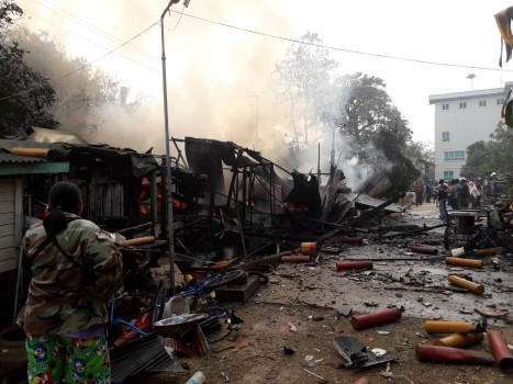 เกิดเหตุพลุระเบิดอย่างรุนแรง จนทำให้ไฟไหม้บ้านเลขที่ 62 บ้านงิ้วซอย 12 หมู่ 3 ต.บ้านงิ้ว อ.สามโคก จ.ปทุมธานี // ที่เกิดเหตุเป็นบ้านไม้ใต้ถุนสูง ถูกไฟไหม้จาก พลุระเบิด เจ้าหน้าที่เร่งดับเพลิง จนสามารถควบคุมเพลิงไว้ได้ภายในเวลา 10 นาที จากนั้น ฉีดน้ำเพื่อป้องกันการลุกไหม้ขึ้นมาอีก และยังมีพลุที่ยังไม่ระเบิดอีกจำนวนหนึ่ง บ้านต้นเพลิงเสียหายทั้งหลัง โดยเป็นบ้านที่ซื้อพลุ เพื่อนำมาจุดตามงานต่าง ๆ จากแรงระเบิดทำให้บ้านข้างเคียงเสียหาย 5 หลัง มีทั้งกระจกและกระเบื้องแตก และมีผู้บาดเจ็บ 1 คน ชื่อ นางสมนึก ชวนเชย อายุ 50 ปี แม่ค้าขายอาหารตามสั่ง ได้รับบาดเจ็บที่ข้อมือขวา นางสมนึก ชวนเฉย เล่าวว่า ร้านของตนเอง อยู่ข้างบ้านที่เกิดเหตุ จู่ๆ มีประกายไฟ จากในบ้านและได้ยิงเสียงระเบิดตามมาสนั่งวันไหว และมีเพลิงลุกไหม้อย่างรวดเร็ว มีเศษกระเบื้องกระเด็นมาถูกข้อมือจนได้รับบาดเจ็บ ส่วนลูกค้ากระโดดหนี ออกจากร้านทันที ตนเองตกใจ ก็วิ่งขอความช่วยเหลือจากบ้านข้างเคียงด้วย ด้านเจ้าหน้าที่ตำรวจ เข้ามาตรวจสอบที่เกิดเหตุ พร้อมประสานรถน้ำดับเพลิง เนื่องบ้านที่มีพลุอยู่ภายในชุมชนและติดกับโรงเรียนวัดบ้านงิ้วไม่ถึง 100 เมตร เบื้องต้นต้องดูใบอนุญาตว่ามีถูกต้องหรือไม่ และตรวจสอบว่าที่บ้านดังกล่าว เป็นที่ผลิต หรือนำจากที่อื่นมาเก็บไว้เพื่อรอการนำไปใช้งาน อย่างไรก็ตาม ขณะเกิดเหตุไม่มีใครอยู่บ้าน ส่วนสาเหตุของพลุระเบิดนั้น ต้องให้ เจ้าหน้าที่พิสูจน์หลักฐานมาตรวจสอบอย่างละเอียดอีกครั้ง