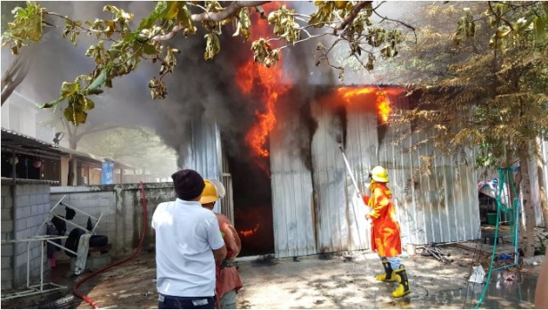 วันนี้ เวลา 13.30 น. ร.ต.ท.สรรพาวุธ ลำมะนา รองสารวัตรสอบสวน สภ.เมืองประจวบคีรีขันธ์ รับแจ้งเหตุเพลิงไหม้โกดังเก็บดอกไม้พลาสติก บริเวณด้านหลังร้านไม้สวย ถนนพิทักษ์ชาติ ในเขตเทศบาลเมืองประจวบคีรีขันธ์ จึงไปตรวจสอบ พร้อมประสานรถดับเพลิง ในที่เกิดเหตุ พบเพลิงกำลังลุกไหม้โกดังเก็บดอกไม้พลาสติก มีผนังกั้นด้วยแผ่นสแตนเลส อย่างรุนแรง จึงเร่งระดมรถน้ำฉีดสกัดเปลวเพลิง ประมาณ 30 นาที เพลิงจึงสงบ พบว่า ดอกไม้พลาสติคที่เก็บอยู่ในโกดังเสียหายทั้งหมด น.ส.นงนวล รักชม อายุ 42 ปี เจ้าของร้านไม้สวย ให้การว่า ก่อนเกิดเหตุ ได้ยินเสียง ระเบิดจากภายในโกดัง คาดว่ามาจากไฟฟ้าลัดวงจร เข้าไปตรวจสอบ พบภายใน มีกลิ่นไหม้และควันไฟ จึงนำน้ำเข้าไปฉีด แต่สกัดไม่อยู่ เพลิงลุกลามอย่างรวดเร็ว เนื่องจากดอกไม้พลาสติกที่เก็บไว้จัดงานอีเวนท์ต่างๆ เป็นเชื้อเพลิงอย่างดี จึงโทร แจ้งเจ้าหน้าที่เพื่อขอความช่วยเหลือ โดยเพลิงลุกลามอย่างรวดเร็ว ทำให้ดอกไม้ พลาสติกเสียหายทั้งหมด มูลค่าประมาณ 3 ล้านบาท