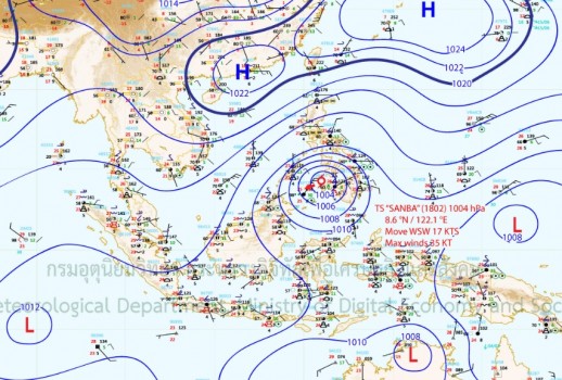 กรมอุตุนิยมวิทยา พยากรณ์อากาศ 24 ชั่วโมงข้างหน้า ประเทศไทยตอนบน รวมทั้ง กรุงเทพมหานครและปริมณฑล ยังคงมีอากาศหนาว สำหรับบริเวณภูเขาสูงในภาคเหนือ และภาคตะวันออกเฉียงเหนือ มีอากาศหนาวถึงหนาวจัด ขอให้ประชาชนรักษาสุขภาพ เนื่องจากสภาพอากาศที่หนาวเย็นลงไว้ด้วย สำหรับบริเวณภาคใต้มีฝนน้อย ส่วนคลื่นลม บริเวณอ่าวไทยและอันดามัน มีกำลังปานกลาง โดยอ่าวไทยตอนล่างมีคลื่นสูงประมาณ 2 เมตร ชาวเรือบริเวณอ่าวไทยตอนล่างควรเพิ่มความระมัดระวังในการเดินเรือในระยะ 1-2 วันนี้ อนึ่ง พายุโซนร้อน"ซันปา" (SANBA) บริเวณตอนใต้ของประเทศฟิลิปปินส์ จะเคลื่อนตัว ลงสู่ทะเลจีนใต้ตอนกลาง ในช่วงวันที่ 14-16 กุมภาพันธ์นี้ คาดว่าพายุนี้เคลื่อนขึ้นฝั่ง ประเทศเวียดนาม ในช่วงวันที่ 17-18 กุมภาพันธ์ และจะอ่อนกำลังลงเป็นพายุดีเปรสชัน และหย่อมความกดอากาศต่ำ ตามลำดับ ซึ่งพายุนี้ยังไม่มีผลกระทบต่อประเทศไทย ( เวปกรมอุตุนิยมวิทยา)