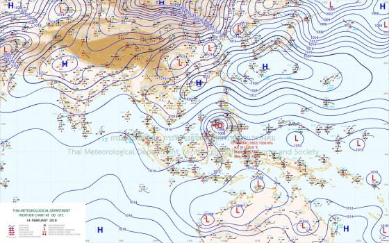 กรมอุตนิยมวิทยา พยากรณ์อากาศ 24 ชั่วโมงข้างหน้า ภาคตะวันออกเฉียงเหนือ ภาคกลาง ภาคตะวันออก รวมทั้งกรุงเทพมหานครและปริมณฑล จะมีอุณหภูมิสูงขึ้น 1-3 องศาเซลเซียส กับมีหมอกในตอนเช้าและมีหมอกหนาในบางพื้นที่ แต่ยังคงมีอากาศเย็นถึงหนาวใน ภาคเหนือและภาคตะวันออกเฉียงเหนือ สำหรับบริเวณภูเขาสูงในภาคเหนือและภาค ตะวันออกเฉียงเหนือมีอากาศหนาวถึงหนาวจัด ขอให้ประชาชนรักษาสุขภาพ เนื่องจาก สภาพอากาศที่หนาวเย็นลงไว้ด้วย สำหรับคลื่นลมบริเวณอ่าวไทยและอันดามัน มีกำลังปานกลาง โดยบริเวณอ่าวไทยตอนล่าง มีคลื่นสูงประมาณ 2 เมตร ชาวเรือ บริเวณดังกล่าวควรเพิ่มความระมัดระวังในการเดินเรือ อนึ่ง พายุโซนร้อน “ซันปา” (SANBA) บริเวณด้านตะวันตกของประเทศฟิลิปปินส์ ได้อ่อนกำลังลงเป็นพายุดีเปรสชันแล้ว คาดว่าพายุนี้จะเคลื่อนเข้าชายฝั่งประเทศ เวียดนาม และจะอ่อนกำลังลงเป็นหย่อมความกดอากาศต่ำในช่วงวันที่ 16-17 กุมภาพันธ์นี้ ซึ่งพายุนี้ยังไม่มีผลกระทบต่อประเทศไทย
