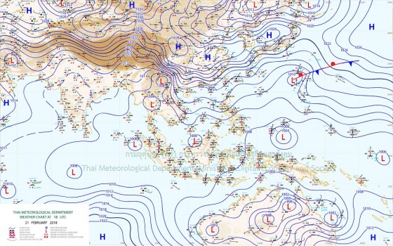 ประกาศกรมอุตุนิยมวิทยา "อากาศแปรปรวนบริเวณประเทศไทยตอนบน (มีผลกระทบ ตั้งแต่วันที่ 22-24 กุมภาพันธ์ 2561)" ฉบับที่ 10 บริเวณประเทศไทยตอนบน จะมีสภาพอากาศแปรปรวน โดยมีพายุฝนฟ้าคะนอง กับมีลมกระโชกแรง และมีฝนตกหนักบางแห่ง อาจมีลูกเห็บตกบางพื้นที่ในภาค ตะวันออกเฉียงเหนือ โดยจะมีผลกระทบดังนี้ ช่วงวันที่ 22-23 กุมภาพันธ์ ภาคตะวันออกเฉียงเหนือ: จังหวัดเลย อุดรธานี หนองคาย หนองบัวลำภู บึงกาฬ สกลนคร นครพนม กาฬสินธุ์ มุกดาหาร ชัยภูมิ ขอนแก่น และ นครราชสีมา ภาคเหนือ: จังหวัดเชียงราย พะเยา น่าน แพร่ ลำพูน ลำปาง สุโขทัย อุตรดิตถ์ พิษณุโลก พิจิตร และเพชรบูรณ์ ภาคกลาง: จังหวัดนครสวรรค์ อุทัยธานี ชัยนาท ลพบุรี สิงห์บุรี สระบุรี อ่างทอง พระนครศรีอยุธยา สุพรรณบุรี กาญจนบุรี ราชบุรี สมุทรสงคราม สมุทรสาคร รวมทั้งกรุงเทพมหานครและปริมณฑล ภาคตะวันออก: จังหวัดปราจีนบุรี สระแก้ว นครนายก ฉะเชิงเทรา ชลบุรี และระยอง ภาคใต้: จังหวัดเพชรบุรี ประจวบคีรีขันธ์ และชุมพร วันที่ 24 กุมภาพันธ์ ภาคใต้: จังหวัดสุราษฎร์ธานี นครศรีธรรมราช พัทลุง และสงขลา จึงขอให้ประชาชนบริเวณประเทศไทย หลีกเลี่ยงการอยู่ในที่โล่งแจ้ง ใต้ต้นไม้ใหญ่ และป้ายโฆษณาที่ไม่แข็งแรง ในขณะที่เกิดพายุฝนฟ้าคะนองและลมกระโชกแรง ช่วงวันและเวลาดังกล่าว สำหรับเกษตรกรควรระวังความเสียหายที่จะเกิดต่อผลผลิต ทางการเกษตรไว้ด้วย ทั้งนี้ เนื่องจากบริเวณความกดอากาศสูงกำลังปานกลาง ได้แผ่ลงมาปกคลุม ถึงประเทศเวียดนามและประเทศลาวแล้ว คาดว่าจะแผ่ลงมาปกคลุมภาค ตะวันออกเฉียงเหนือและทะเลจีนใต้ในวันนี้ (22 ก.พ. 61) ในขณะที่ประเทศไทยตอนบน มีอากาศร้อน ลักษณะเช่นนี้ทำให้บริเวณดังกล่าวมีพายุฝนฟ้าคะนองและลมกระโชกแรง อาจมีลูกเห็บตกบางพื้นที่ จึงขอให้ประชาชนติดตามประกาศจากกรมอุตุนิยมวิทยา อย่างใกล้ชิด