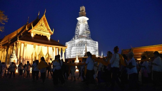 พุทธศาสนิกชนทั้งชาวไทยและต่างชาติ ซึ่งส่วนใหญ่แต่งกายด้วยชุดสีชาวหรือสีใกล้เคียง โดยส่วนใหญ่เดินทางกันเป็นครอบครัว รวมทั้งนักท่องเที่ยวจำนวนมาก พากันหลั่งไหลไปยัง วัดพระมหาธาตุ วรมหาวิหาร จ.นครศรีธรรมราช เพื่อสักการะบูชา และนำผ้าพระบฏห่มองค์พระบรมธาตุเจดีย์ เนื่องในวันมาฆบูชา เพื่อถวายเป็นพุทธบูชาและความเป็นสิริมงคลในการดำเนินชีวิต โดยเมื่อจัดซื้อผ้าพระบฏได้แล้ว ต่างนำผ้าคลี่ออกจากม้วน เดินเข้าแถวตอนต่อกันแห่รอบองค์พระบรมธาตุเจดีย์ 3 รอบ จากนั้นนำผ้าพระบฏดังกล่าวไปห่มองค์พระบรมธาตุเจดีย์หรือเจดีย์ราย ที่อยู่โดยรอบองค์พระบรมธาตุเจดีย์ ทั้ง 149 องค์ ขณะที่เมื่อช่วงเช้า นายจำเริญ ทิพญพงศ์ธาดา ผู้ว่าราชการจังหวัดนครศรีธรรมราช พร้อมด้วยผู้พิพากษาหัวหน้าศาลจังหวัด รองผู้ว่าราชการจังหวัด หัวหน้าส่วนราชการและพุทธศาสนิกชน ร่วมกันทำบุญตักบาตรข้าวสารอาหารแห้งแด่พระสงฆ์ 100 รูป เพื่อถวายเป็นพุทธบูชา และความเป็นสิริมงคล โดยมี พระเทพวินยาภรณ์ รองเจ้าคณะภาค 16-17-18 (ธรรมยุต) เจ้าอาวาสวัดพระมหาธาตุวรมหาวิหาร เป็นประธานสงฆ์