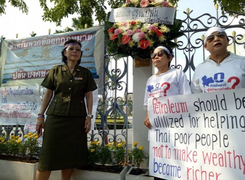 ที่หน้าทำเนียบรัฐบาล กลุ่มเครือข่ายประชาชนปกป้องประเทศประมาณ 30 คน นำโดยพันโทแพทย์หญิงกมลพรรณ ชีวพันธ์ศรี นำพวงหรีดไปแขวนที่รั้วข้างประตู 4 ทำเนียบรัฐบาล และติดป้ายคัดค้านการจัดสรรปิโตรเลียม พร้อมส่งจดหมายเปิดผนึก ถึงพลเอก ประยุทธ์ จันทร์โอชา นายกรัฐมนตรี และหัวหน้าคณะรักษาความสงบ แห่งชาติ หรือ คสช.เพื่อเรียกร้องให้รัฐบาลยกเลิกประกาศคณะกรรมการปิโตรเลียม เรื่องหลักเกณฑ์และวิธีการจัดสรรพื้นที่สำรวจและผลิตปิโตรเลียม รวมทั้ง เรียกร้อง ให้รัฐมนตรีว่าการกระทรวงพลังงาน ปลัดกระทรวงพลังงาน และอธิบดีกรมเชื้อเพลิง ธรรมชาติ ลาออกจากตำแหน่ง จากนั้น พันตำรวจเอก จักรกริศน์ โฉสูงเนิน ผู้กำกับการสถานีตำรวจนครบาลดุสิต เข้าเจรจาขอความร่วมมือให้เคลื่อนย้ายออกจากบริเวณรั้วทำเนียบรัฐบาล พร้อมกับ แจ้งให้ทราบว่าเป็นการชุมนุมในพื้นที่ห้ามชุมนุม ผิด พ.ร.บ.การชุมนุม ก่อนที่จะเชิญตัว กลุ่มผู้ชุมนุมไปยัง สน.ดุสิต