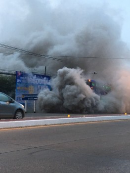 เมื่อเช้ามืดที่ผ่านมา บนถนนจามเทวี ด้านหน้าสนามกีฬากลางหนองกระทิง ตรงข้าม ศูนย์ ปภ.เขต 10 ลำปาง ต.บ่อแฮ้ว อ.เมือง จ.ลำปาง เกิดเหตุกลุ่มควันดำ โพยพุ่ง ออกมาจากท่อไอเสียรถบัสรับส่งนักกีฬา ท่ามกลางสายตาของผู้ที่ใช้รถใช้ถนน แต่ไม่มี ใครกล้าเข้าไปช่วยเหลือ เนื่องจากคิดว่าเป็นไฟไหม้รถ คนขับบัสก็ตกใจ ไม่รู้จะทำอย่างไร ผ่านไปประมาณ 3-4 นาที มีคนขับรถบัสอีกคันหนึ่งขับมาถึง จึงจอดรถ ก่อนจะเข้าไป ปิดสวิทช์กุญแจ เพื่อดับเครื่องยนต์ จากนั้น กลุ่มควันเริ่มจางหายไป ส่วนสาเหตุคาดว่า มาจากเครื่องยนต์ขัดข้องและสายคลัทช์ เร่งค้าง ทำให้เครื่องยนต์ เร่งจนเกิดกลุ่มควันพุ่งออกมาจากท่อไอเสียจำนวนมากดังกล่าว