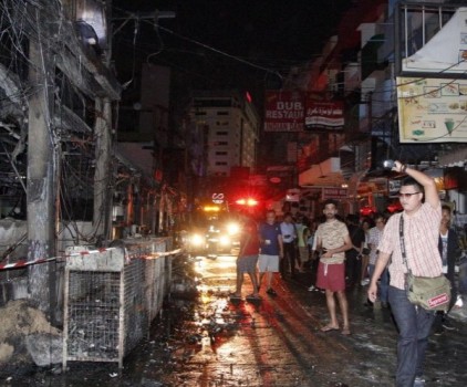 เหตุเกิดภายในซอย 16 พัทยา ตัดเข้าถนนคนเดิน วอล์กกิ้งสตรีท พัทยาใต้ ม.10 ต.หนองปรือ อ.บางละมุง จ.ชลบุรี เมื่อกลางดึกที่ผ่านมา นายนริศ นิรามัยวงศ์ นายอำเภอบางละมุง นำกำลังลงพื้นที่ตรวจสอบจุดเกิดเหตุและสั่งการด้วยตัวเอง ที่เกิดเหตุเป็นแหล่งเศรษฐกิจสำคัญอีกแห่งของเมืองพัทยาและมีนักท่องเที่ยวจำนวนมาก พบเพลิงกำลังลุกไหม้บาร์เบียร์ และรถ จยย.อย่างรุนแรง ทั้งพนักงานร้านและนักท่องเที่ยวพากันวิ่งหนีตายกันอย่างอลหม่าน ตำรวจพร้อมเจ้าหน้าที่ฝ่ายปกครองเร่งระบายนักท่องเที่ยวและกันไม่ให้ผู้ที่ไม่เกี่ยวข้องเข้าไปบริเวณที่เกิดเหตุ เพื่อป้องกันอันตราย เจ้าหน้าที่ดับเพลิงพยายามฉีดน้ำสกัดเปลวไฟที่โหมลุกไหม้อย่างทุลักทุเล ใช้เวลากว่า 30 นาทีเพลิงจึงสงบลง ตรวจสอบพบเพลิงไหม้บาร์เบียร์ 2 ร้าน คือ ร้านไททานิกบาร์ และแอนแอนบาร์ ทำให้ทรัพย์สินภายในร้ายเสียหายทั้งมด แล้วลามไปไหม้ รถ จยย.ที่จอดอยู่ริมถนนทั้งสองฝั่ง ได้รับความเสียหายถึง 16 คัน อาคารพาณิชย์ที่อยู่ตรงข้าม ซึ่งเปิดเป็นร้านตัดผม ร้านเสริมสวย ร้านอาหาร ได้รับความเสียหายด้วย นอกจากนี้ ยังมีผู้ที่สำลักควัน 1 ราย และได้รับบาดเจ็บถูกไฟลวกอีก 1 คน เจ้าหน้าที่กู้ภัยนำส่งโรงพยาบาล (ภาพ นสพ.คมชัดลึก)