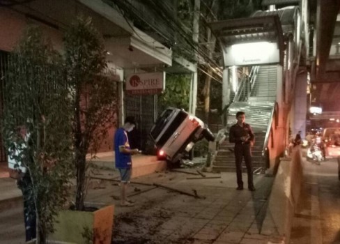 เมื่อเวลา 04.00 น. พ.ต.ท.กษิดิ์ยศ แพรขาว สารวัตร(สอบสวน) สน.พระโขนง รับแจ้งเหตุ รถกระบะเสียหลักพุ่งชนบันไดทางขึ้นรถไฟฟ้าบีทีเอส สถานีปุณณวีถี บริเวณปากซอย สุขุมวิท 101/1 แขวงบางจาก เขตพระโขนง กทม. เมื่อไปตรวจสอบ พบรถกระบะอีซูซุ รุ่นดีแมคซ์ สีบรอนซ์เทา ทะเบียน 1 ฒท 7157 กรุงเทพมหานคร พลิกตะแคงอยู่ข้าง บันไดทางขึ้นสถานีรถไฟฟ้า สภาพด้านหน้าพังยับเยิน มีเศษชิ้นส่วนกระถางต้นไม้ เก้าอี้สาธารณะ เศษชิ้นส่วนรถกระจัดกระจายไปทั่วบริเวณ นอกจากนี้ ยังพบราวเหล็ก บันไดทางขึ้นและประตูเหล็กของสถานีรถไฟฟ้าเสียหาย ขณะที่ นายสันติสุข แสนหน่อ อายุ 23 ปี เป็นคนขับรถกระบะ ไม่ได้รับบาดเจ็บ สอบสวนทราบว่า นายสันติสุข มีอาชีพขายน้ำเต้าตู้ มาซื้อของแถวย่านห้วยขวาง กำลังจะขับรถกลับบ้านภายในซอยสุขุมวิท 101 เมื่อมาถึงจุดที่เกิดเหตุ อ้างว่า เห็นรถน้ำ กทม.กำลังฉีดรดน้ำต้นไม้ ทำให้ถนนเปียก รถจึงลื่นเสียหลักปีนขึ้น ฟุตบาท เบื้องต้นเจ้าหน้าที่แจ้งข้อหาขับรถโดยประมาทเป็นเหตุให้ทรัพย์สินผู้อื่น ได้รับความเสียหาย จากนั้นนำตัวส่งพนักงานสอบสวนดำเนินคดีต่อไป ( ภาพจากคมชัดลึก)