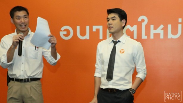 นายธนาธร จึงรุ่งเรืองกิจ อดีตรองประธานกรรมการบริหารบริษัท ไทยซัมมิท กรุ๊ป พร้อมด้วย นายปิยบุตร แสงกนกกุล นักวิชาการด้านกฎหมายรัฐธรรมนูญ และผู้ร่วม ก่อตั้งพรรค แถลงเปิดตัว"พรรคอนาคตใหม่" เช้าวันนี้ นายธนาธร กล่าวว่า จุดยืนในการตั้งพรรคอนาคตใหม่ เพื่อสร้างการเมืองแบบใหม่ ฟื้นความเชื่อมั่นในระบอบประชาธิปไตย ที่สำคัญจะออกแบบนโยบายที่ทำให้ ประชาชนมีโอกาสทางเศรษฐกิจที่เท่าเทียม ทำลายระบบผูกขาด เปิดโอกาส ให้ทุกคนมีส่วนร่วมในเวทีการเมือง โดยไม่ผูกขาดจากคนกลุ่มใดกลุ่มหนึ่ง ยืนยันว่า พรรคจะไม่เติบโตด้วยเงินในกระเป๋าของตน แต่จะระดมทุนจากประชาชน มั่นใจว่า จะสามารถทำได้เหมือนพรรคเดโมแครต จึงขอให้เชื่อมั่นว่า จะไม่มีใครคนหนึ่ง หรือนายทุน ที่อยู่เหนือสมาชิกพรรค ( ภาพจาก คมชัดลึก)