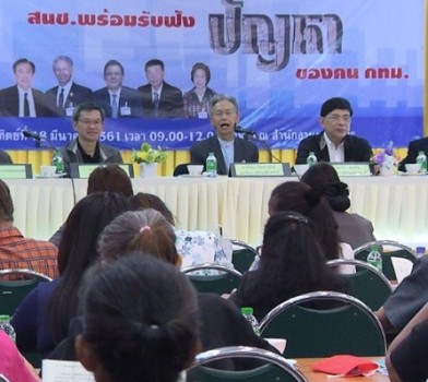 สภานิติบัญญัติแห่งชาติ (สนช.) นำโดย นายวัลลภ ตังคณานุรักษ์ ประธานคณะอนุกรรมการเตรียมการการดำเนินงานโครงการ สนช.พบประชาชน ลงพื้นที่รับฟังสภาพปัญหาชุมชนแออัดและการจัดระเบียบหาบเร่แผงลอยในพื้นที่กรุงเทพใต้ 10 เขต ประกอบด้วย เขตคลองเตย วัฒนา บางรัก บางคอแหลม บางนา ปทุมวัน พระโขนง ยานนาวา สวนหลวง และเขตสาทร ที่สำนักงานเขตสาทร โดยมีประชาชนและผู้แทนชุมชน นำเสนอปัญหา โดยตัวแทนประชาชนในพื้นที่ กล่าวถึงปัญหาหาบเร่ แผงลอย บนทางเท้าสาธารณะ ไม่เป็นระเบียบเรียบร้อยและไม่สะอาด เป็นอุปสรรคต่อการสัญจรบนทางเท้า และการจราจรติดขัด ขณะที่รัฐบาลและกรุงเทพมหานคร ไม่มีทิศทางชัดเจนในการแก้ปัญหา จึงมีข้อเสนอให้รัฐบาลกำหนดนโยบายและทิศทางให้ชัดเจนในการจัดระเบียบทางเท้าสาธารณะ และควรพิจารณา จัดหาสถานที่ที่เหมาะสมให้แก่ผู้ค้า ที่เป็นที่ยอมรับทั้ง 3 ฝ่าย คือ ภาครัฐ ผู้ค้า และประชาชนที่สัญจรบนทางเท้า นายวัลลภ ตังคณานุรักษ์ ระบุว่า โครงการ สนช.พบประชาชน ลงพื้นที่รับฟังปัญหาทุกจังหวัดแล้ว ครั้งต่อไป จะจัดขึ้นที่ จุฬาลงกรณ์มหาวิทยาลัย โดยเชิญผู้อำนวยการเขตทุกเขต มาเสนอความเห็นเรื่องการบริหารจัดการกรุงเทพมหานคร และวันที่ 24 เมษายน จะเชิญผู้แทนทุกเขตทั่วกรุงเทพมหานคร มาแสดงความเห็นที่รัฐสภา เกี่ยวกับสภาพปัญหาที่เกิดในพื้นที่ของตนเอง โดยมีตัวแทนรัฐบาล สมาชิก สนช. และผู้ว่าราชการกรุงเทพมหานคร เข้าร่วมรับฟัง