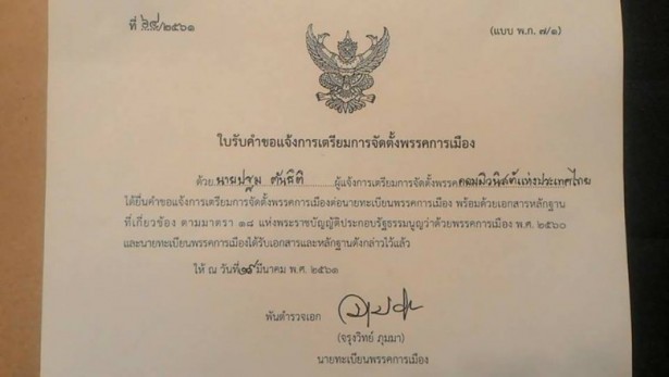 วันนี้มีผู้ที่ไปจดจองขอตั้งพรรค "คอมมิวนิสต์แห่งประเทศไทย" ต่อสำนักงานคณะกรรมการ การเลือกตั้ง หรือ กกต. นายแสวง บุญมี รองเลขาธิการ กกต. เปิดเผยว่า เจ้าหน้าที่อาจรับเรื่อง ทางธุรการไว้ แต่ได้สั่งการให้ไม่รับจดแจ้ง เพราะถือว่าขัดต่อกฎหมายและรัฐธรรมนูญ เนื่องจากไม่เป็นประชาธิปไตย ด้าน พล.ต.พีรวัฒฌ์ แสงทอง โฆษกกองอำนวยการรักษาความมั่นคงภายในราชอาณาจักร หรือ กอ.รมน.กล่าวว่า กรณีนี้ต้องแยกเป็น 2 กรณี คือ การตั้งชื่อพรรคการเมือง กกต.จะมี ระเบียบหลักเกณฑ์อยู่แล้วว่าชื่ออะไร ตั้งได้หรือไม่ได้ และการดำเนินการใด ๆ ที่เสี่ยง จะกระทบต่อความมั่นคง ถือเป็นหน้าที่ของเราต้องเข้าไปดำเนินการ ทั้งนี้ การตั้งชื่อ พรรคคอมมิวนิสแห่งประเทศไทย ยังไม่ได้บ่งบอกถึงพฤติกรรม ที่จะทำให้เกิดความ ไม่มั่นคง หรือ การสร้างความแตกแยก เป็นแค่เพียงชื่อพรรค ซึ่ง กกต.จะเป็นผู้พิจารณา ว่าเหมาะสมหรือไม่ ขั้นตอนต่อไป พรรคต้องบอกวัตถุประสงค์ในการจัดตั้งพรรค แผนดำเนินการจัดกิจกรรมทางการเมืองเป็นอย่าง ตรงนี้เชื่อมั่นว่า กกต.จะดูแล ให้การดำเนินการอยู่ในกรอบ ระเบียบตามรัฐธรรมนูญ และกฎหมายที่มีอยู่