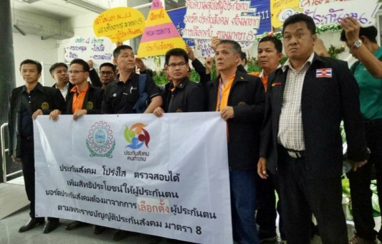 ที่ศูนย์บริการประชาชน ทำเนียบรัฐบาล นายมนัส โกศล ประธานสภาองค์การลูกจ้าง พัฒนาแรงงานแห่งประเทศไทย หรือ สพท. ร่วมกับเครือข่ายประกันสังคมคนทำงาน ยื่นหนังสือถึง พล.อ.ประยุทธ์ จันทร์โอชา นายกรัฐมนตรีและหัวหน้า คสช. เพื่อยื่น ข้อเสนอการเลือกตั้งผู้แทนฝ่ายนายจ้าง และผู้ประกันตนในคณะกรรมการประกันสังคม หรือ บอร์ด สปส. ตามมาตรา 8 ของ พ.ร.บ.ประกันสังคมฉบับที่ 4 โดยเสนอให้ผู้ประกันตน มีสิทธิเลือกตั้งผู้แทนผู้ประกันตนในเขตจังหวัดด้วยอัตราส่วนผู้ประกันตน 150,000 คน ต่อผู้แทนผู้ประกันตน 1 คน ประธาน สพท.กล่าวว่า ในส่วนนายจ้าง ให้มีสิทธิเลือกตั้งผู้แทนนายจ้างในเขตจังหวัด ด้วยอัตราส่วนนิติบุคคล หรือบุคคลธรรมดา 5,000 รายต่อผู้แทนนายจ้าง 1 คน ขณะเดียวกัน เมื่อมีการเลือกตั้งผู้แทนผู้ประกันตน หรือผู้แทนนายจ้าง ฝ่ายละ 125 คน แล้วให้มีการประชุมสมัชชาที่ประชุมใหญ่ผู้แทนผู้ประกันตนระดับจังหวัด ห รือผู้แทนนายจ้างระดับจังหวัด เพื่อคัดเลือกกันเองจากที่ประชุมใหญ่ของแต่ละส่วน เพื่อให้เป็นคณะกรรมการประกันสังคม จำนวน 7 คน ทั้งนี้ ขอให้ พล.อ.ประยุทธ์ รับพิจารณาเรื่องดังกล่าวอย่างเร่งด่วน เพราะเป็นเรื่องสำคัญ