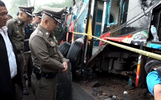 พลตำรวจเอก ศรีวราห์ รังสิพรามณกุล รองผู้บัญชาการตำรวจแห่งชาติ พร้อมด้วย พลตำรวจตรี วัชรินทร์ บุญคง ผู้บังคับการตำรวจภูธรจังหวัดนครราชสีมา ลงพื้นที่ ติดตามการค้นหาหลักฐานอุบัติเหตุรถทัวร์พลิกคว่ำ จนทำให้มีผู้เสียชีวิต 18 ราย บาดเจ็บอีก 32 ราย ที่จุดเกิดเหตุถนนสาย 304 กบินทร์บุรี-ปักธงชัย ตำบลอุดมทรัพย์ อำเภอวังน้ำเขียว จังหวัดนครราชสีมา ซึ่งเจ้าหน้าที่ตำรวจศูนย์พิสูจน์หลักฐาน 3 ตำรวจภูธรภาค 3 กลุ่มงานเคมีฟิสิกส์ พร้อมด้วยหัวหน้าฝ่ายตรวจสอบสภาพรถ สำนักงานขนส่งจังหวัดนครราชสีมา และ ช่างผู้เชี่ยวชาญจากบริษัทเชิดชัยทัวร์ ร่วมตรวจสอบภายในซากรถ ประกอบด้วย การตรวจสอบล้อยางรถยนต์และระบบเบรก เบื้องต้นพบว่าตำแหน่งเกียร์จุดคนขับ อยู่ในตำแหน่งเกียร์ว่าง และกระปุกเกียร์มีร่องรอยแตกหัก อาจเป็นสาเหตุของการ เกิดอุบัติเหตุ ซึ่งยังไม่สามารถสรุปได้ ส่วนระบบเบรกยางรถยนต์ อยู่ในสภาพปกติ ซึ่งจะสามารถรวบรวมพยานหลักฐาน ส่งให้พนักงานสอบสวนประกอบสำนวนเพื่อ ดำเนินคดีตามกฎหมายต่อไป.