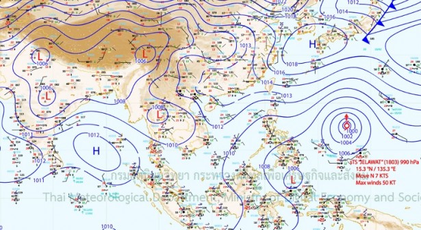 กรมอุตุนิยมวิทยา พยากรณ์อากาศ 24 ชั่วโมงข้างหน้า บริเวณภาคเหนือและภาคกลาง มีอุณหภูมิสูงขึ้นทำให้มีอากาศร้อน กับมีฝนฟ้าคะนองบางพื้นที่ในบริเวณภาคเหนือ ส่วนมากทางด้านตอนล่างของภาค ด้านตะวันตกและตอนล่างของภาคตะวันออก เฉียงเหนือ ภาคตะวันออก ภาคกลาง รวมทั้งกรุงเทพมหานครและปริมณฑล และ ภาคใต้ โดยกรุงเทพฯ และปริมณฑล มีเมฆมาก กับมีฝนฟ้าคะนอง ร้อยละ 30 ของพื้นที่ (เวป กรมอุตุนิยมวิทยา)