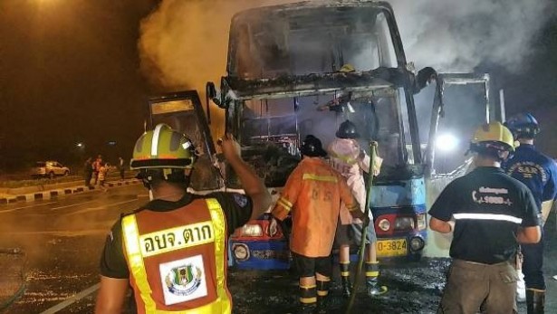 กรณีรถบัสโดยสารบรรทุกแรงงานชาวเมียนมา 47 คน จากชายแดนอำเภอแม่สอด เกิดเหตุเพลิงไหม้บนทางหลวงสายแม่สอด-ตาก เขตอำเภอเมืองตาก เมื่อเช้ามืดวานนี้ ( 30 มี.ค.) ส่งผลให้แรงงานถูกไฟคลอกเสียชีวิตภายในรถถึง 20 ราย พันตำรวจเอก กฤชกนก ด่านอุดม ผู้กำกับการ สถานีตำรวจภูธรแม่ท้อ กล่าวว่า ขณะนี้ พนักงานสอบสวน ได้สอบปากคำนายบัญฑูร วิฑูร อายุ 48 ปี คนขับรถโดยสาร และ ภรรยา รวมถึงแรงงานชาวเมียนมา ที่เดินทางมากับรถคันดังกล่าวที่รอดชีวิตทั้งหมด 27 คน ยังเหลือผู้ที่รักษาตัวในโรงพยาบาลสมเด็จพระเจ้าตากสินมหาราช 1 คน และ ที่ส่งต่อไปรักษาตัวที่โรงพยาบาลพุทธชินราช จังหวัดพิษณุโลก อีก 1 คน ขณะนี้สอบ ปากคำแล้ว และสำนักขนส่งจังหวัดตาก ให้ผู้ประกอบการรถทัวร์บริษัทดังกล่าว จัดหา รถทัวร์นำแรงงานไปส่งที่นวนคร จังหวัดปทุมธานี ขณะนี้เดินทางถึงจุดหมายปลายทางแล้ว และอีกส่วนหนึ่งมีความประสงค์ไม่ทำงานต่อ เนื่องจากขวัญเสียจากการจากไปของ ญาติมิตร ขอเดินทางกลับประเทศเมียนมาบ้านเกิด ก็ได้จัดรถบริการส่งชายแดนแม่สอด ถึงที่หมายเมื่อคืนนี้แล้ว ส่วนของคดีความ ขนส่งจังหวัดตาก แจ้งความผิดตาม พ.ร.บ.ขนส่งทางบก และเทียบปรับแล้ว ส่วนการดำเนินคดีความทางอาญานายบัญฑูร ยังไม่สามารถแจ้งขอกล่าวหาได้ ต้องรอผลสรุป พิสูจน์หลักฐานก่อน