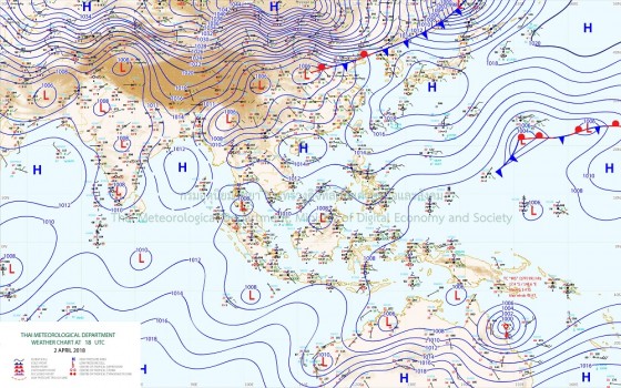 พยากรณ์อากาศ 24 ชั่วโมงข้างหน้า บริเวณภาคเหนือ ภาคกลาง ภาคตะวันออก รวมทั้งกรุงเทพมหานครและปริมณฑล ยังคงมีฝนฟ้าคะนองและลมกระโชกแรง ในระยะนี้ ส่วนภาคใต้ยังคงมีฝนฟ้าคะนองบางแห่ง ขอให้ประชาชนบริเวณดังกล่าว ระมัดระวังอันตรายจากฝนฟ้าคะนองและลมกระโชกแรงไว้ด้วย อนึ่ง ช่วงวันที่ 5-7 เมษายน บริเวณความกดอากาศสูงจากประเทศจีน จะแผ่ลงมา ปกคลุมประเทศไทยตอนบนและทะเลจีนใต้ ทำให้บริเวณดังกล่าวมีพายุฤดูร้อนเกิดขึ้น โดยมีลักษณะพายุฝนฟ้าคะนอง ลมกระโชกแรง กับมีลูกเห็บตก และมีฝนตกหนัก บางพื้นที่ ซึ่งเริ่มมีผลกระทบในภาคตะวันออกเฉียงเหนือและภาคตะวันออกก่อน ส่วนภาคอื่นๆ จะได้รับผลกระทบในวันถัดไป จึงขอให้ประชาชนระวังอันตรายจาก พายุฤดูร้อน ลมกระโชกแรง และฟ้าผ่า ที่จะเกิดขึ้น โดยหลีกเลี่ยงการอยู่ในที่โล่งแจ้ง ใต้ต้นไม้ใหญ่ และป้ายโฆษณาที่ไม่แข็งแรง รวมถึง ระวังอันตรายจากฝนตกหนักและ ฝนตกสะสมที่อาจทำให้เกิดน้ำท่วมขัง และน้ำป่าไหลหลาก สำหรับเกษตรกร ควรเตรียมการป้องกันและระวังความเสียหายที่จะเกิดต่อผลผลิตทางการเกษตรไว้ด้วย