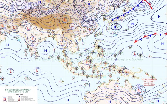 ประกาศกรมอุตุนิยมวิทยา "พายุฤดูร้อนบริเวณประเทศไทยตอนบน(มีผลกระทบตั้งแต่ วันที่ 5-7 เมษายน 2561)" ฉบับที่ 4 ช่วงวันที่ 5-6 เมษายน ภาคเหนือ ภาคตะวันออกเฉียงเหนือ ภาคกลาง ภาคตะวันออก รวมทั้งกรุงเทพมหานครและปริมณฑลจะมีพายุฤดูร้อนเกิดขึ้น โดยมีลักษณะของพายุ ฝนฟ้าคะนอง ลมกระโชกแรง ฟ้าผ่า กับมีลูกเห็บตกและมีฝนตกหนักบางพื้นที่ ส่วนวันที่ 7 เมษายน ภาคตะวันออกเฉียงเหนือ และภาคตะวันออกจะมีฝนลดลง ส่วนภาคเหนือ ภาคกลาง รวมทั้งกรุงเทพมหานคร และปริมณฑลยังคงมีฝนฟ้าคะนอง ได้ต่อเนื่อง จึงขอให้ประชาชนระวังอันตรายจากพายุฝนฟ้าคะนอง ลมกระโชกแรง ฟ้าผ่า และลูกเห็บตกที่จะเกิดขึ้น โดยหลีกเลี่ยงการอยู่ในที่โล่งแจ้ง ใต้ต้นไม้ใหญ่ และ ป้ายโฆษณาที่ไม่แข็งแรง รวมถึงระวังอันตรายจากฝนตกหนักและฝนตกสะสม ที่อาจทำให้เกิดน้ำท่วมขัง และน้ำป่าไหลหลาก สำหรับเกษตรกรควรเตรียมการ ป้องกันและระวังความเสียหายที่จะเกิดต่อผลผลิตทางการเกษตรไว้ด้วย โดยจะมีผลกระทบตามพื้นที่ต่างๆ ดังนี้ ช่วงวันที่ 5-6 เมษายน -ภาคเหนือ: จังหวัดเชียงราย พะเยา แพร่ น่าน อุตรดิตถ์ พิษณุโลก และเพชรบูรณ์ -ภาคตะวันออกเฉียงเหนือ: จังหวัดเลย หนองบัวลำภู หนองคาย อุดรธานี บึงกาฬ สกลนคร นครพนม มุกดาหาร ขอนแก่น มหาสารคาม กาฬสินธุ์ ร้อยเอ็ด ชัยภูมิ นครราชสีมา บุรีรัมย์ สุรินทร์ ศรีสะเกษ ยโสธร อำนาจเจริญ และอุบลราชธานี -ภาคตะวันออก: จังหวัดนครนายก ปราจีนบุรี สระแก้ว ฉะเชิงเทรา ชลบุรี ระยอง จันทบุรี และตราด -ภาคกลาง: จังหวัดนครสวรรค์ ลพบุรี สระบุรี ชัยนาท สิงห์บุรี อ่างทอง พระนครศรีอยุธยา รวมทั้งกรุงเทพมหานคร และปริมณฑล วันที่ 7 เมษายน -ภาคเหนือ: จังหวัดเชียงใหม่ เชียงราย พะเยา แพร่ น่าน ลำพูน ลำปาง ตาก สุโขทัย อุตรดิตถ์ พิษณุโลก กำแพงเพชร พิจิตร และเพชรบูรณ์ -ภาคตะวันออก: จังหวัดนครนายก ปราจีนบุรี สระแก้ว ฉะเชิงเทรา ชลบุรี ระยอง จันทบุรี และตราด -ภาคกลาง: จังหวัดนครสวรรค์ ลพบุรี สระบุรี อุทัยธานี ชัยนาท สิงห์บุรี อ่างทอง พระนครศรีอยุธยา สุพรรณบุรี กาญจนบุรี ราชบุรี สมุทรสาคร สมุทรสงคราม รวมทั้งกรุงเทพมหานครและปริมณฑล ทั้งนี้ เนื่องจากบริเวณความกดอากาศสูงกำลังแรงจากประเทศจีน ได้แผ่ลงมาปกคลุม ถึงประเทศจีนตอนกลางแล้ว คาดว่าจะแผ่ลงมาปกคลุมประเทศไทยตอนบนและทะเลจีนใต้ ช่วงวันที่ 5-7 เมษายนนี้ ประกอบกับคลื่นกระแสลมตะวันตกเคลื่อนเข้าปกคลุมภาคเหนือ ทำให้บริเวณดังกล่าวมีพายุฤดูร้อนเกิดขึ้น โดยมีลักษณะของพายุฝนฟ้าคะนอง ลมกระโชกแรง ฟ้าผ่า กับมีลูกเห็บตกบางพื้นที่ และมีฝนตกหนักบางแห่ง ส